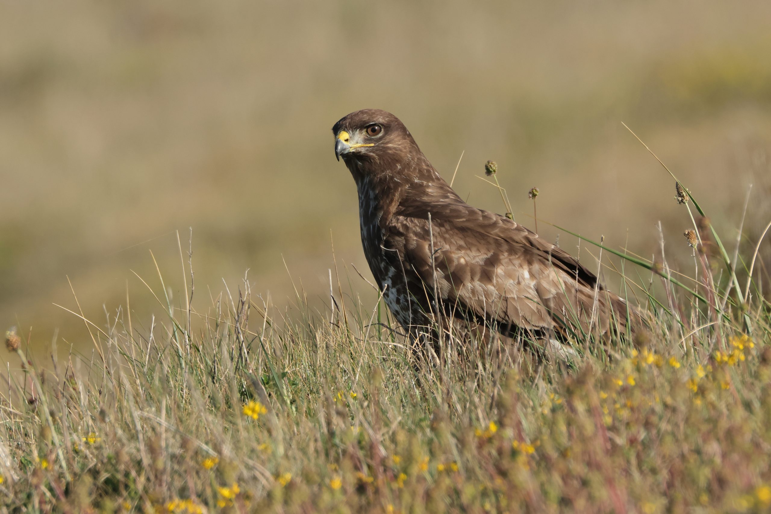 Despite being the most widespread UK bird of prey, the buzzard is only recently re-establishing in the Yorkshire Dales. The buzzard has a distinctive call − a mournful mewing – said to sound like a cat. It holds its wings in a raised ‘V’ when soaring, whereas the similarly sized red kite holds its wings flat, or slightly downcurved.